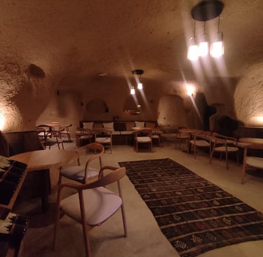 Kızılırmak’ın kıyısında, Kapadokya’nın nefes alan taşlarının arasında; sıcaklığı, samimiyeti ve yaratıcılığı bir araya getiren küçük ama hikâyesi büyük bir mekânız biz. Bir mağaranın doğal dokusunda doğan cafemiz, “yoldan geçen herkes için küçük bir mola, içeri giren herkes için büyük bir nefes” olsun diye kuruldu.